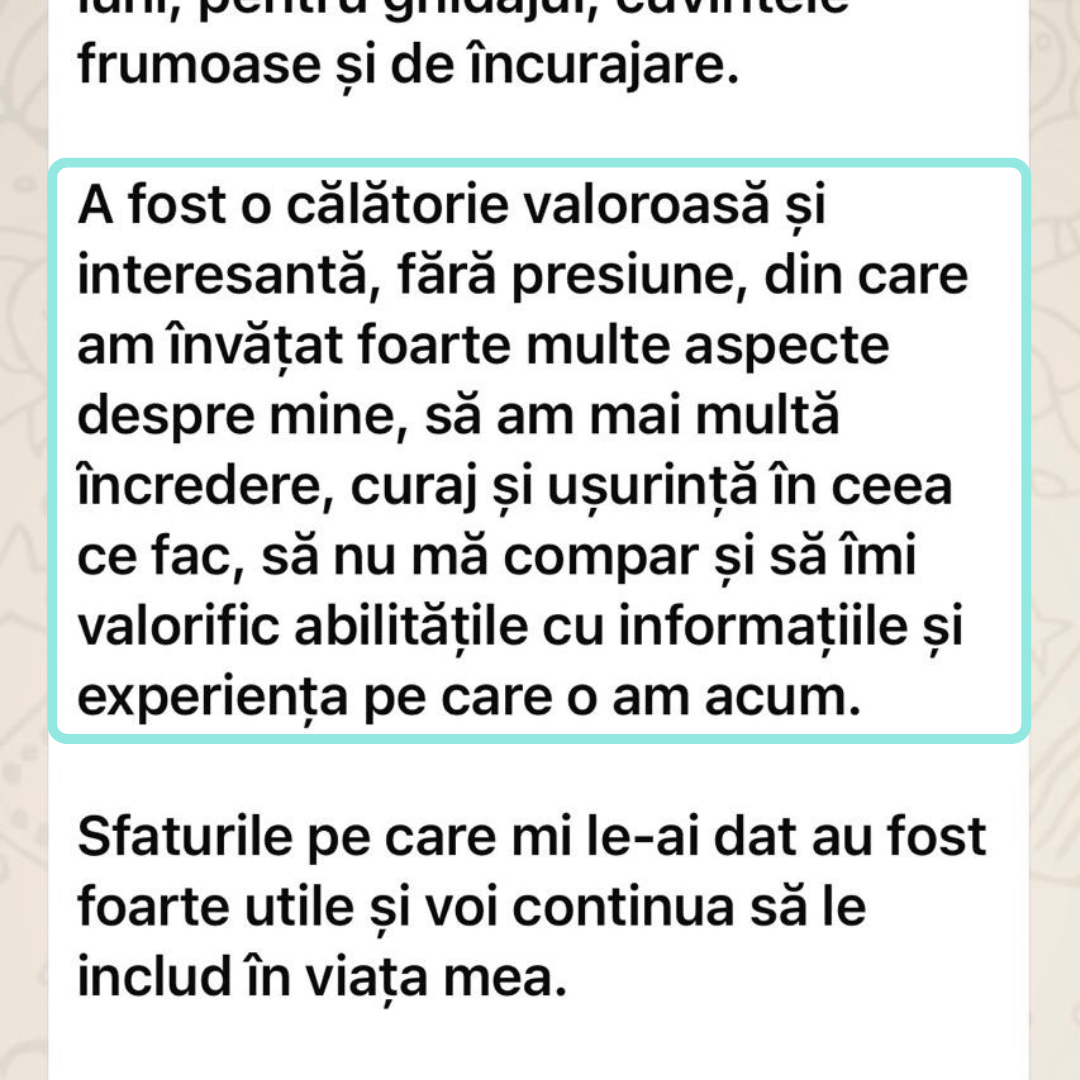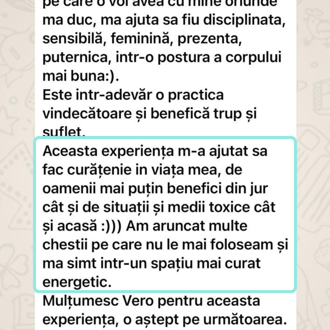 M-a ajutat să ies din forțare și să construiesc o relație mai blândă și mai conștientă cu mine.