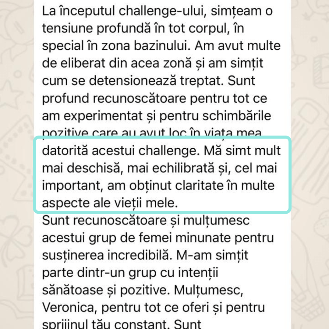 Programul este blând și orientat spre siguranță, însă nu înlocuiește recomandările medicale. Dacă ai afecțiuni specifice, este recomandat să consulți medicul înainte de a începe.